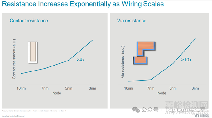 背面電源分配網(wǎng)絡(luò)(Backside Power Delivery Network)正在嘗試解決晶體管微縮過程中的一個重大問題——能耗。這里存在一個電阻問題,這是電氣工程中的一個基本問題。需要溫馨提醒讀者的是,電阻表示材料對電流阻礙作用的強(qiáng)弱。對于銅這類材料來說,電阻從來都不是一個限制因素,但是隨著我們不斷縮小銅線的尺寸,電阻開始呈指數(shù)級增長。