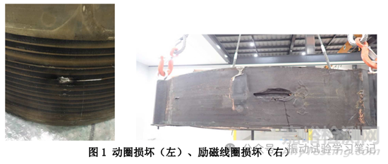 點檢的主要目的和意義,一是延長使用壽命,二是提高生產效率。振動臺在加振方向按照試驗條件進行振動,理想條件下是希望只在振動方向上振動,垂直方向振動時水平方向沒有偏量,水平方向振動時垂直方向沒有偏量。在出廠時廠家基本上都能滿足這些誤差要求,但隨著設備的長期使用,尤其是動圈的上下支持機構會出現(xiàn)各種各樣的問題,如磨損、松動、老化等。如果不及時的進行維護保養(yǎng),導致問題逐漸加劇,最終會出現(xiàn)設備失效。比如,動圈和短路環(huán)碰撞,動圈損壞(動圈是振動試驗機的核心部件且更換價格昂貴),如下圖2。
