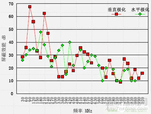 圖6為拼裝機(jī)柜的屏蔽效能,30-230MHz:20dB;230-1000MHz:10dB