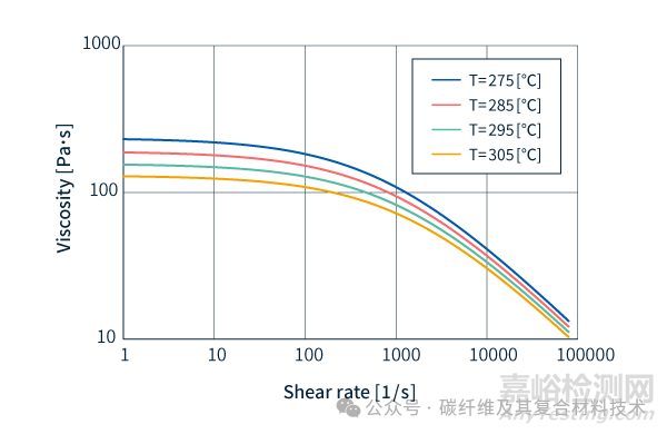進(jìn)行比較時(shí)必須小心,因?yàn)闇y(cè)量時(shí)的溫度和負(fù)載可能因材料數(shù)據(jù)中的樹脂類型而異。低剪切區(qū)的流動(dòng)性與實(shí)際成型時(shí)的數(shù)據(jù)進(jìn)行對(duì)比研究具有重要意義。