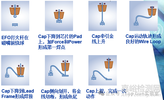 b)EFO(打火桿):用于在形成第一焊點(diǎn)時(shí)的燒球。打火桿打火形成高溫,將外露于Capillary前端的金線高溫熔化成球形,以便在Pad上形成第一焊點(diǎn)(Bond Ball);
