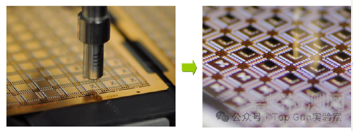 3、Collect以一定的力將芯片Bond在點(diǎn)有銀漿的L/F的Pad上;