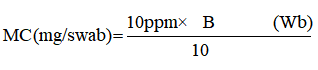 8.1.4 取樣方法:設(shè)備經(jīng)過清洗后,使用溶劑濕潤的拭子擦拭先前已確定的部位,每個(gè)取樣部位的擦拭取樣面積約100cm2,然后將該拭子溶解在已知體積的提取溶劑(100ml注射用水)內(nèi),檢測殘留量。