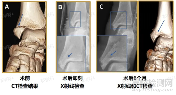 一位52歲的女性患者因左踝關(guān)節(jié)骨折且骨折移位接受了該產(chǎn)品的植入手術(shù)。術(shù)后影像顯示固定效果良好。