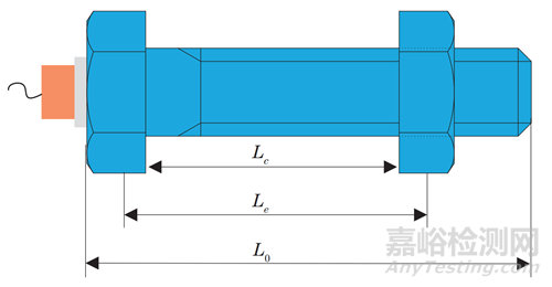 當(dāng)彈性波從螺栓端面入射時(shí),該彈性波會(huì)在晶界處發(fā)生散射,聲能向各方向擴(kuò)散,從而能量發(fā)生損耗。當(dāng)螺栓受載時(shí),其有效受力長度不僅包括夾緊長度Lc,故將螺栓有效受力長度重新定義為: