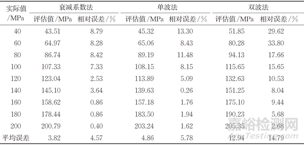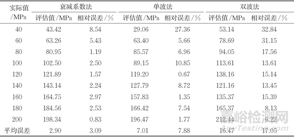 總體而言,衰減系數(shù)法的測(cè)量誤差明顯小于單波法和雙波法,特別是測(cè)量短螺栓時(shí)仍能保持較高的測(cè)量精度,衰減系數(shù)法的測(cè)量效果并未因螺栓長度更短和強(qiáng)度更高而受到影響。