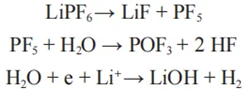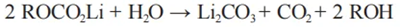 當電池水分控制在一定范圍內(nèi)時,痕量水的存在會使電池容量衰減得到改善。在化成過程中,負極材料表面形成致密的SEI膜,將有效抑制因電解液中溶劑分子共嵌入導致的負極材料失穩(wěn),同時SEI膜形成過程中產(chǎn)生的烷基碳酸鋰與痕量水發(fā)生反應,即: