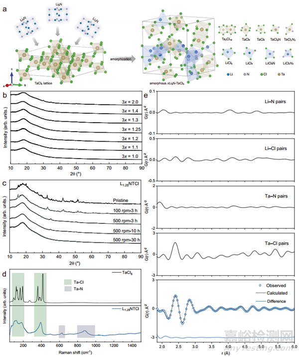 圖2:非晶態(tài)xLi3N-TaCl5的結(jié)構(gòu)分析。