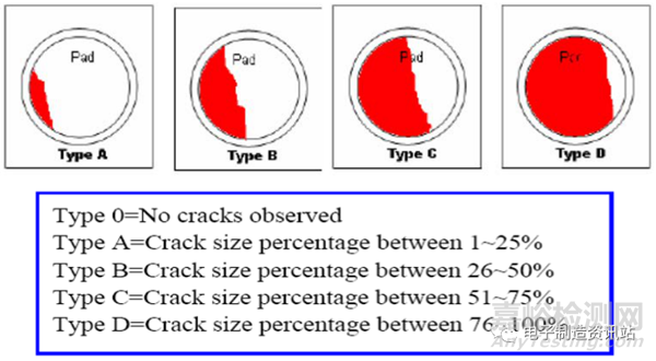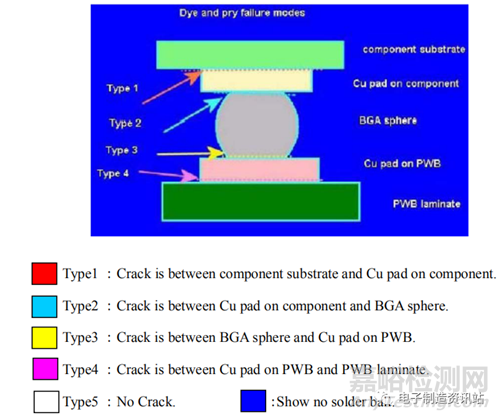 通常BGA焊點的斷裂模式如下圖所示: