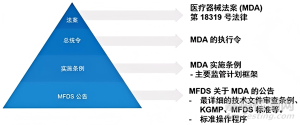 韓國醫(yī)療器械的監(jiān)管法規(guī)體系可分為以下四個層級: