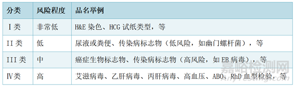 根據(jù)“體外診斷器械法案實(shí)施條例”第2條,體外診斷器械按風(fēng)險高低可分為Ⅰ類∼Ⅳ類。