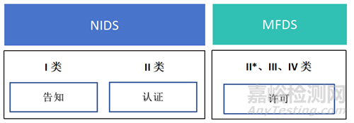 韓國食品藥品安全部(Ministry of Food and Drug Safety,MFDS)負(fù)責(zé)韓國的醫(yī)療器械監(jiān)管,為減少監(jiān)管工作壓力,MFDS下放了部分監(jiān)管權(quán)力或與有資質(zhì)第三方審查機(jī)構(gòu)合作;如將I類醫(yī)療器械告知以及II 類認(rèn)證的受理/審批工作授權(quán)了其附屬機(jī)構(gòu),即國家醫(yī)療器械安全信息中心(National Institute of Medical Device Safety Information,NIDS);此外,就II 類認(rèn)證的技術(shù)文件審查工作及KGMP符合性審核工作與有資質(zhì)的第三方審查機(jī)構(gòu)(TPR)進(jìn)行合作。
