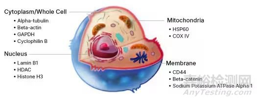 首先考慮樣品的物種來源、目的蛋白的表達部位例如全細胞、細胞核、細胞質(zhì)、細胞膜或者血清 、血漿樣本等。一般地,哺乳動物的細胞或者組織樣本選擇GAPDH、actin、tubulin(全細胞)、ATP1A1(細胞膜蛋白)、Histone H3(核蛋白)、Lamin(細胞核摸)、COX412(線粒體)、Albumin(全血、血漿、血清)作內(nèi)參。而一些稀有物種具體需要通過查閱文獻選擇比較保守的管家基因作為蛋白內(nèi)參。