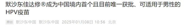 1月8日,四價人乳頭瘤病毒疫苗 (釀酒酵母)在國內(nèi)獲批新適應(yīng)癥,用于 9~26 歲男性接種。