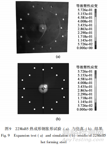 利用脹形試驗對材料斷裂模型進行應用驗證,試樣尺寸如圖8所示,試樣周邊以螺栓固定,采用Φ10mm 的沖頭以5mm·s-1的速度下壓試樣直至破裂。