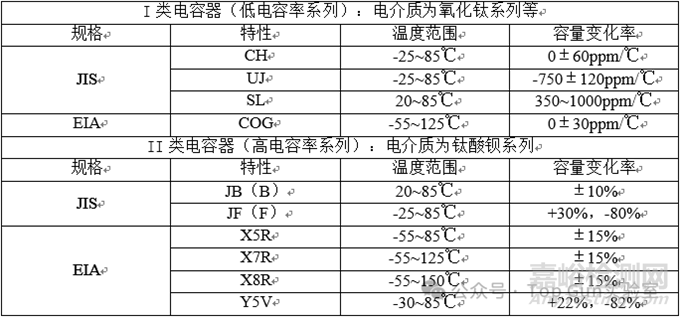MLCC大致可分為I類(低電容率系列)和II類(高電容率系列)兩類,根據(jù)溫度特性還可以進(jìn)一步細(xì)分,溫度特性由EIA規(guī)格與JIS規(guī)格等制定。