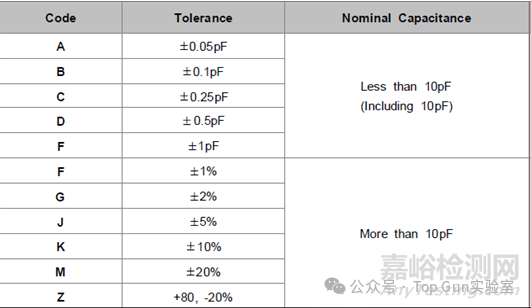 2)容差:在特定條件下測試的容值允許偏差范圍,通常通過測試MLCC實(shí)際容值來檢查是否滿足被檢MLCC容差是否符合規(guī)格要求。