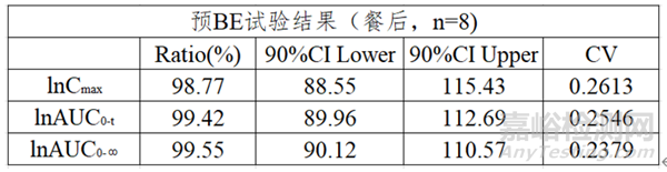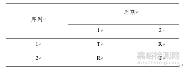 查詢參比制劑相關(guān)資料得知,其為低變異短半衰期產(chǎn)品。故預(yù)BE試驗(yàn)采用兩制劑、單次給藥、兩序列、兩周期、餐后8例的設(shè)計(jì)方案。如圖6、圖7所示: