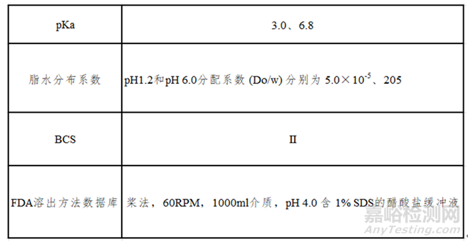 在開(kāi)發(fā)溶出方法之前,研究者須對(duì)藥品化合物的相關(guān)性質(zhì)進(jìn)行一定的了解。如其BCS分類、藥代動(dòng)力學(xué)特性、API的Pka值、lgP值、API在不同pH條件下的溶出度差異及穩(wěn)定性、API是否存在多晶型及不同晶型間的溶出度差異、溶出介質(zhì)的離子強(qiáng)度對(duì)API溶解度是否有影響等等,這些信息對(duì)后續(xù)溶出介質(zhì)的篩選具有指導(dǎo)性意義。