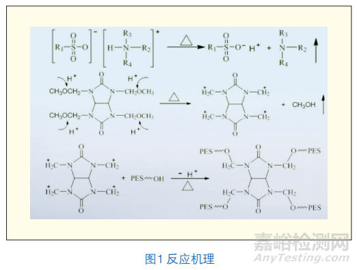 戶外綿綿粉末涂料主要由羥基聚酯樹脂,四甲氧基甲基甘脲(TMMGU)1174,胺封閉的磺酸催化劑32-18A,流平劑,脫氣劑,填料和顏料等成分組成,水紋、網(wǎng)紋、龜紋以及孔雀紋都基于該體系,在固化過(guò)程中其主要反應(yīng)過(guò)程分為