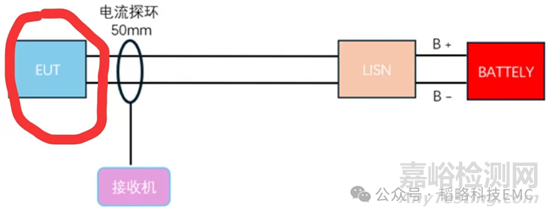 傳導(dǎo)測量電子、電氣設(shè)備或系統(tǒng)通過信號線、電源線或地線傳輸出去的干擾噪聲,無論是CEC測試還是CEV測試,測試主體均為產(chǎn)品端口延伸出去的線束,所以理論上只需要把線束上的噪聲環(huán)境處理得當,(即下圖紅圈部分)傳導(dǎo)測試理論上就不會超標。