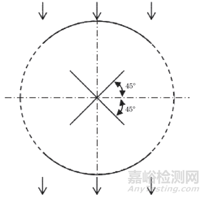 實(shí)際工作中不能將圓形缺陷槽的“端點(diǎn)切線法”用于檢測靈敏度的驗(yàn)證,也就不能用于兩次相互垂直磁化工藝中偏離磁化方向45°角朝向上檢測靈敏度的驗(yàn)證。