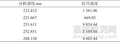 表1 硅元素不同分析譜線下的信號(hào)強(qiáng)度
