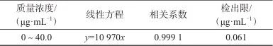 表6 質(zhì)量濃度線性范圍、線性方程、相關(guān)系數(shù)、檢出限