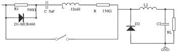 在開關(guān)控制電源的輸入部分加入緩沖電路(見圖3),其由線性阻抗穩(wěn)定網(wǎng)絡(luò)組成,用于消除電力線干擾、電快速瞬變、電涌、電壓高低變化和電力線諧波等潛在的干擾。緩沖電路器件參數(shù)為D1為MUR460,R1=500Ω,C=6nF,L=36mH,R=150Ω。