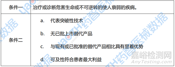 獲得突破性器械的條件是申請(qǐng)上市前批準(zhǔn)(PMA)、上市前通告 (510(k)) 或 DeNovo指定的器械產(chǎn)品,需同時(shí)符合以下兩個(gè)條件,其中第二個(gè)條件至少滿足一條。