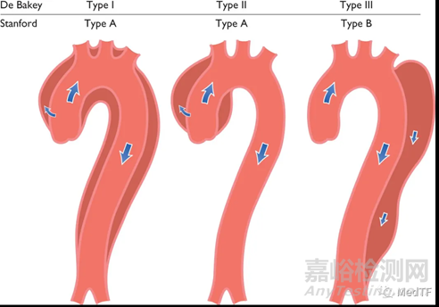 主動(dòng)脈夾層可以分為A型和B型: