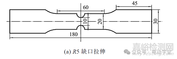 研究表明,金屬材料韌性斷裂失效是由加載力和微觀粒子的聯(lián)合導致的,其斷裂行為與材料的受力狀態(tài)具有一定的相關(guān)性。由于汽車零部件材料在碰撞過程中的應(yīng)力受力狀態(tài)非常復雜,因此,需設(shè)計多種受不同應(yīng)力狀態(tài)的試樣以及不同工況的試驗,獲得材料的斷裂性能。