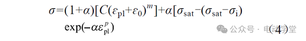 (4)式中,σ為Swift模型在混合S-H-S模型中的權(quán)重系數(shù);?pl為去除彈性段數(shù)據(jù)后的塑性應(yīng)變值;σi為材料的屈服強度;C、?0、m、K、σsat、α和p為參數(shù)。