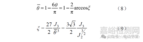 式中,θ為洛德角;θ為歸一化洛德角系數(shù);J2、J3分別為第二、三偏應(yīng)力張量不變量。