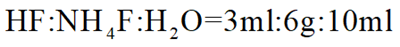 2、氧化硅的刻蝕:BOE溶液,通常使用氟化銨作為緩沖劑稀釋45%濃度的氫氟酸,常用的配方為