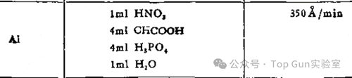4、鋁的腐蝕:熱磷酸、硝酸、醋酸和去離子水混合液。