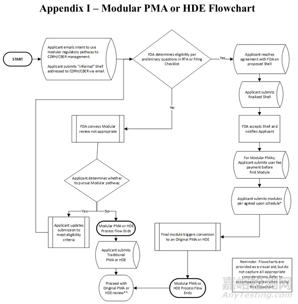 如下附錄I包括模塊評審中通常涉及的步驟的流程圖。第一步應該是通過電子郵件聯(lián)系CDRH/CBER。