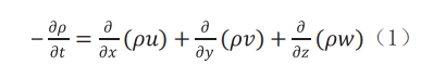其中,ρ為密度,kg/m3;u、ν 和w 為速度矢量在 x、y 和 z 三個方向上的分量,m/s ;t 為時間,s。