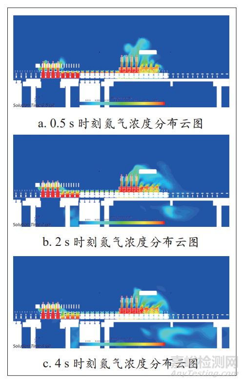 圖13 不同時刻氮氣濃度分布云圖