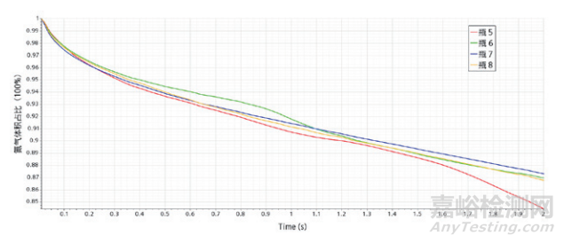 圖 8 前充氮工位瓶內(nèi)氮氣濃度變化曲線