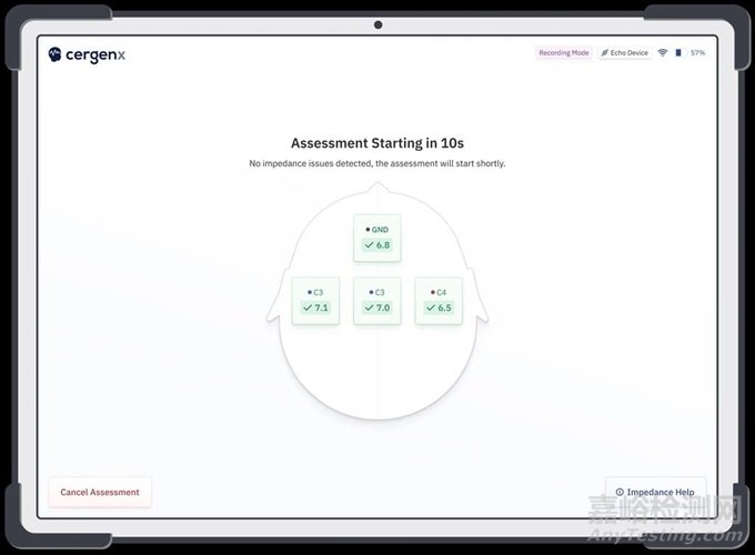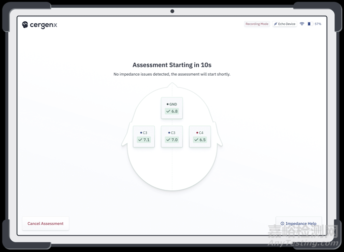 a) 設(shè)備設(shè)置完畢并連接電極后,開始評(píng)估