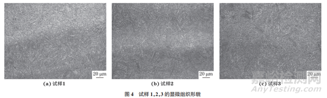 試樣1,2,3 的顯微組織形貌如圖4所示。由圖4可知:試樣1,2,3的組織均為回火索氏體。