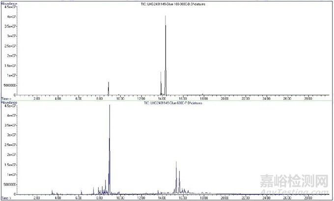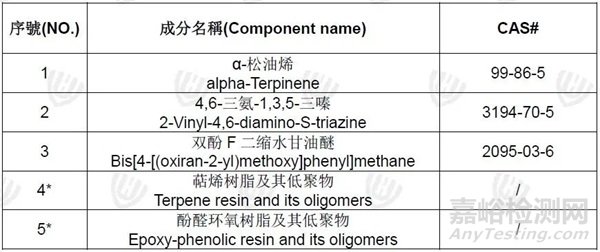 淡黃色污染物主要成分是萜烯樹脂和酚醛環(huán)氧樹脂的低聚物,與膠水成分基本吻合,故烘箱內(nèi)壁的黃色污染物是膠水在熱固化過程釋放的游離單體在烘箱內(nèi)壁固化形成。