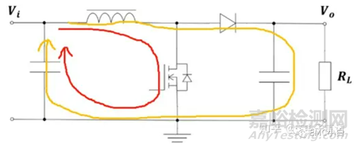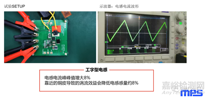 電感在該電路中主要發(fā)揮著儲能的作用,在未達到電流飽和之前,流過電感的電流會持續(xù)上升,會產(chǎn)生變化率近似恒定的磁場,如果此時下方存在一塊金屬板,此時會在金屬板上感應(yīng)出近乎恒定的電壓,由于金屬板不可能電阻處處相等,將會在金屬板上產(chǎn)生渦流,產(chǎn)生熱損耗,如果頻率更高,還會產(chǎn)生趨膚效應(yīng),磁滯損耗等能耗,而由于電感的定義是當導(dǎo)體通過單位安培的電流時其周圍磁力線數(shù)量的度量,由于以上能耗的存在,此時電感的數(shù)值應(yīng)是減小的,鑒于此,電感下方的金屬板會消弱電感數(shù)值,但是對于屏蔽一體型電感,由于磁通量近乎不會泄露出去,因而就近乎不存在磁場能量消耗,因而電感感值不會明顯降低。
