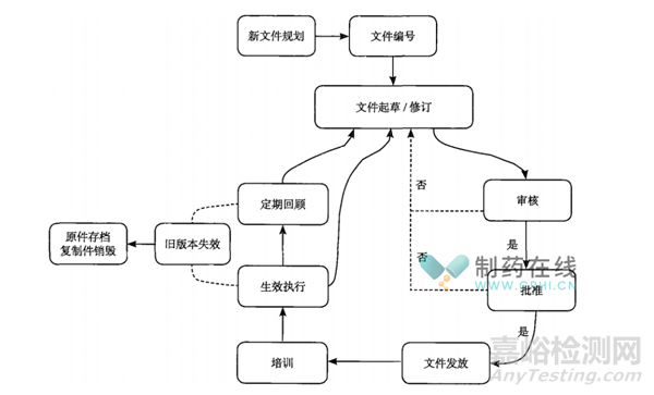 文件管理始終是藥品監(jiān)管部門GMP檢查的重點(diǎn)領(lǐng)域之一,和產(chǎn)品的一樣,文件也有生命周期,GMP文件管理全生命周期示例如下圖: