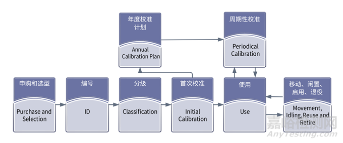 在生物制藥計(jì)量的生命周期內(nèi),還存在一定的特殊性。這主要包括測(cè)試和驗(yàn)證,旨在涵蓋沒(méi)有檢定和校準(zhǔn)規(guī)范的情況,通常也是對(duì)設(shè)備性能的一種測(cè)試或驗(yàn)證。測(cè)試是按照測(cè)試方案進(jìn)行的數(shù)據(jù)比對(duì)或分析,通常沒(méi)有特定的接受標(biāo)準(zhǔn),而是根據(jù)工藝、檢測(cè)或其他要求制定。驗(yàn)證[2]則是按照用戶需求標(biāo)準(zhǔn)和驗(yàn)證方案進(jìn)行的安裝、運(yùn)行和性能確認(rèn),針對(duì)物理、化學(xué)特性進(jìn)行更為全面和深入的數(shù)據(jù)分析,并非僅限于單一部件的校準(zhǔn)或檢定。