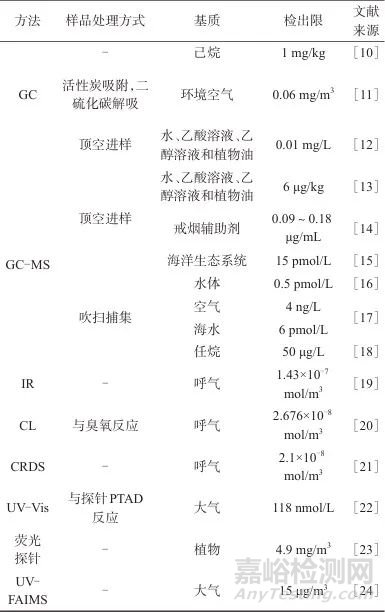 表1 異戊二烯檢測方法比較