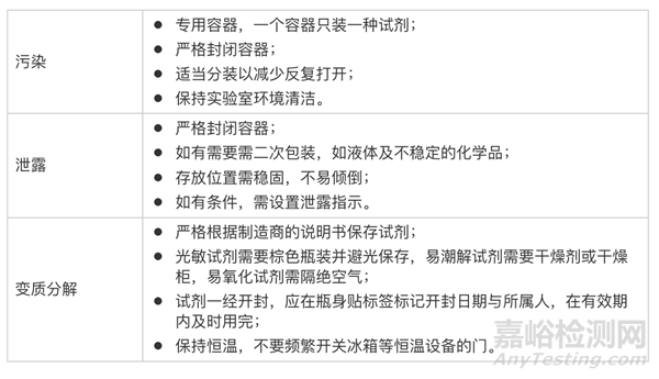 穩(wěn)定性管理可以從污染、泄露、變質(zhì)分解三個(gè)方面考慮。由于生物實(shí)驗(yàn)室中的試劑多是有機(jī)物,而生物樣本不在本篇的討論范圍內(nèi),變質(zhì)分解更有可能是由光照、pH值變化、溫度、濕度與氧化導(dǎo)致的。