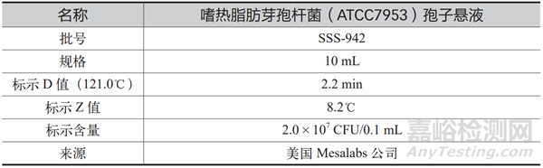 表 1 嗜熱脂肪芽孢桿菌孢子懸液產(chǎn)品信息