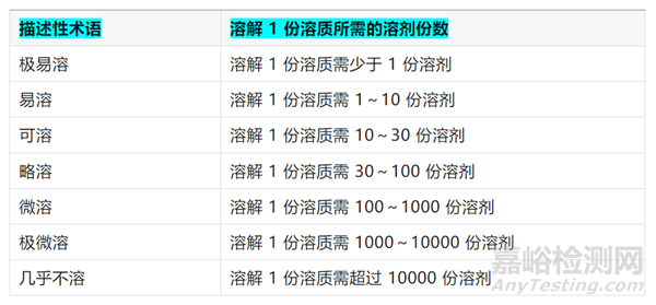 當(dāng)溶液的劑量 / 可溶體積≤250 mL,即劑量分數(shù)(D0)≤1 時,認為該藥物是高度可溶的。水溶性差是藥物發(fā)現(xiàn)與開發(fā)中的主要挑戰(zhàn)之一,因為藥物必須在吸收部位溶解才能被吸收。在不同的藥典中,使用不同的描述性術(shù)語來表示溶解度的范圍類別(表1)。這種傳統(tǒng)方法的問題之一是忽略了劑量,因此一個高活性的化合物根據(jù)其理化特性可以歸類為不溶,但是由于其劑量很低,仍可能完全溶解在相應(yīng)體積的溶劑中。相反,BCS 考慮了所需的劑量,通過使用 D0 進行溶解度分類,避免了理論定義與實際行為之間的不匹配性。